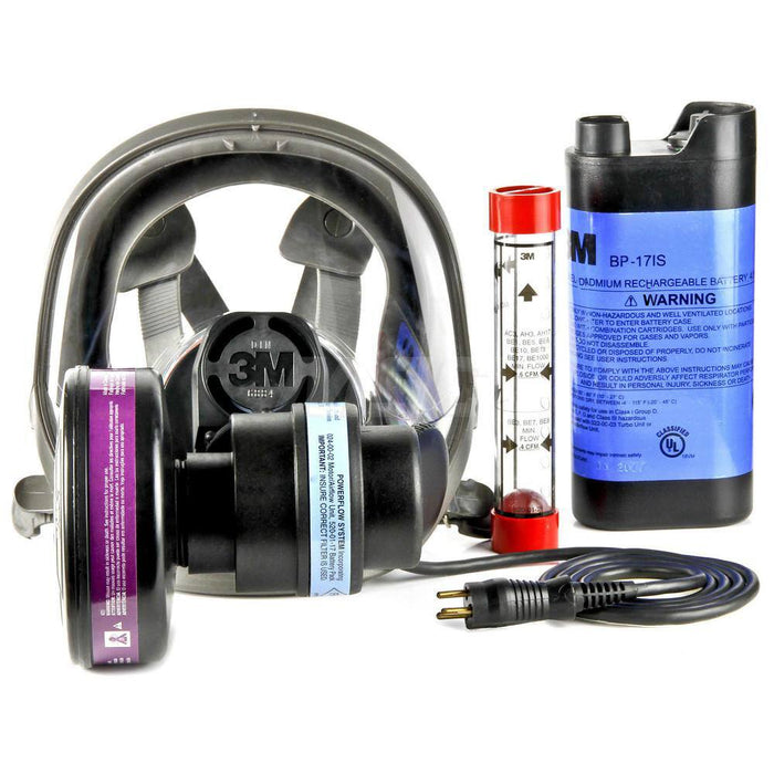 Powered Air Purifying Respirators (PAPR) are motorized systems powered by a battery pack that draw air through a filter or cartridge to provide respiratory protection to the wearer.