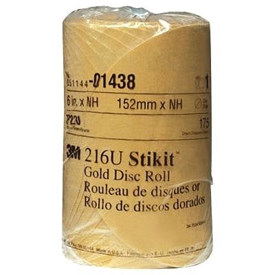 3M Abrasive Stikit Gold Disc Rolls 216U, Aluminum Oxide, 6 in Dia., 220 Grit