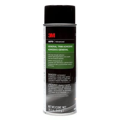 Applicable Materials = Carpet; Fabric; Metal; Plastic; Vinyl, Application Temp. Range [Max] = 160 °F, Application Temp. Range [Min] = -30 °F, Base Type = Synthetic Elastomer, Capacity Vol. [Nom] = 18.1 oz, Chemical Compound = 1, 1-Difluoroethane; 4-Chlorobenzotrifluoride; Hexmethyldisiloxane; Methyl Acetate; Propane, Color = Clear, Flash Point [Nom] = -40 °F, Language = English, Odor/Scent = Sweet Fruity, Packing Type = Tube, Physical Form = Liquid, Quantity = 4 per case, Resistance = Heat; Water, Specific Gravity [Nom] = 0.781, Type = Spray Adhesive, VOC = 430 g/L, Wt. = 1.56 lb. (4 EACH = 1 CASE)