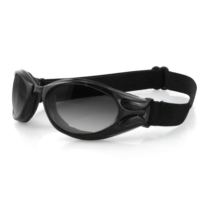 The Igniter is a compact goggle with photochromic lenses so they can be used in all lighting conditions. The closed cell foam helps to create a wind free environment to eliminate eye tearing. The lenses are photochromic starting with a light tint (85% V.L.T.) and transform to a medium grey (25% V.L.T.) in bright UV light. The polycarbonate lenses are shatter resistant and come with an anti-fog coating. The Igniter also comes with a microfiber pouch for easy transport. Prescription ready motorcycle goggles.
