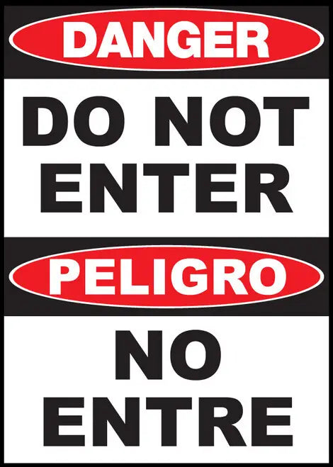 Sign,Bilingual,DANGER,Do Not Enter No Entre,14x10 Plastic..