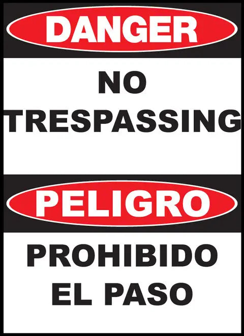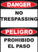 Sign,Bilingual,DANGER,No Trespassing Prohibido El Paso,14x10 Plastic..