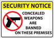 Security Concealed Weapons Sign, 7Hx10W, SA