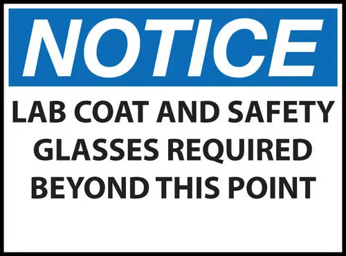 Sign,NOTICE Lab Coat And Safety Glasses Required Beyond This Point,10x14 Plastic..