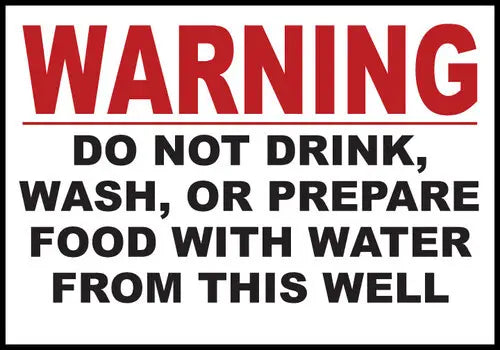 Sign,WARNING Do Not Drink, Wash, Or Prepare Food With Water From This Well,10x14 Plastic..