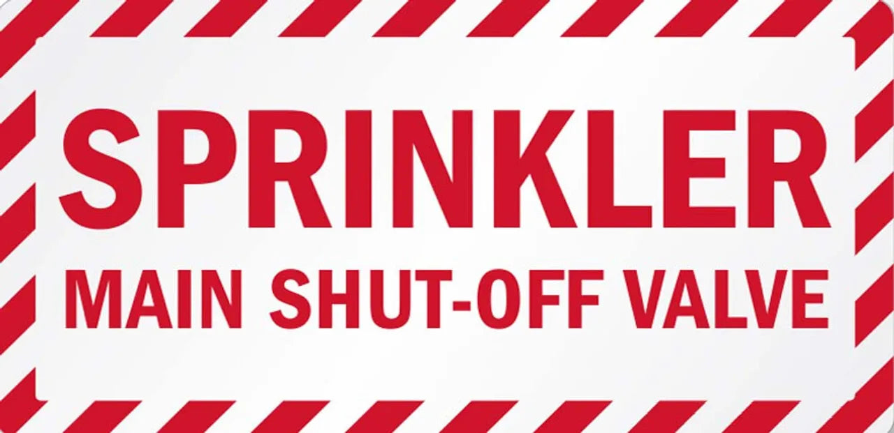 Sign, SPRINKLER MAIN SHUT-OFF VALVE, 7x10, Glow Plastic