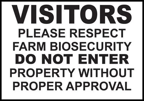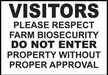 Sign,Visitors Please Respect Farm Biosecurity Do Not Enter Property Without Proper Approval,10x14 Plastic..